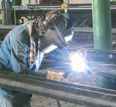 Fabrikasi Pipa GRE – Pembuatan dan perakitan pipa Glass Reinforced Epoxy (GRE), yang memiliki ketahanan tinggi terhadap korosi dan tekanan tinggi.